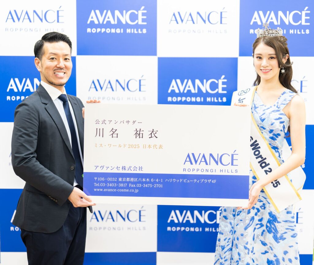 アヴァンセは「ミス・ワールド・ジャパン2025」の公式スポンサーとして、女性たちが“目的ある美しさ”を通じて社会にポジティブな影響をもたらす姿を応援しており、川名さんの“美とは、誰かの希望を紡ぐ力”という信念ある活動と内面からあふれる美しさが、ブランド理念「前進( AVANCÉ)・挑戦・行動する美」と深く響き合いました。